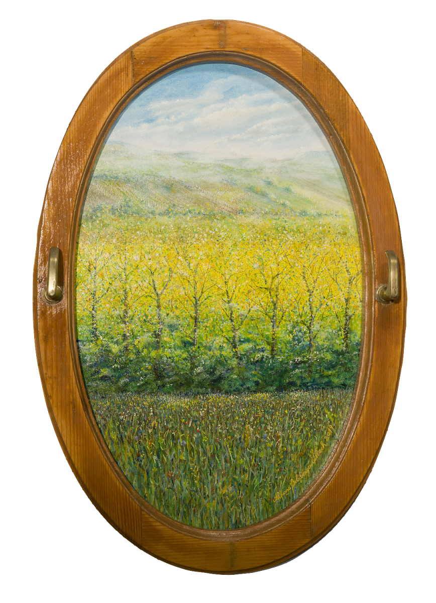 Raum 1 / Gemaltes Fenster 2 Image 3 of 11 2019 Heldenberg, Öl, Leinwand kaschiert auf Spanplatte, 63 x 43 cm, Fensterrahmen Jahrhundertwende