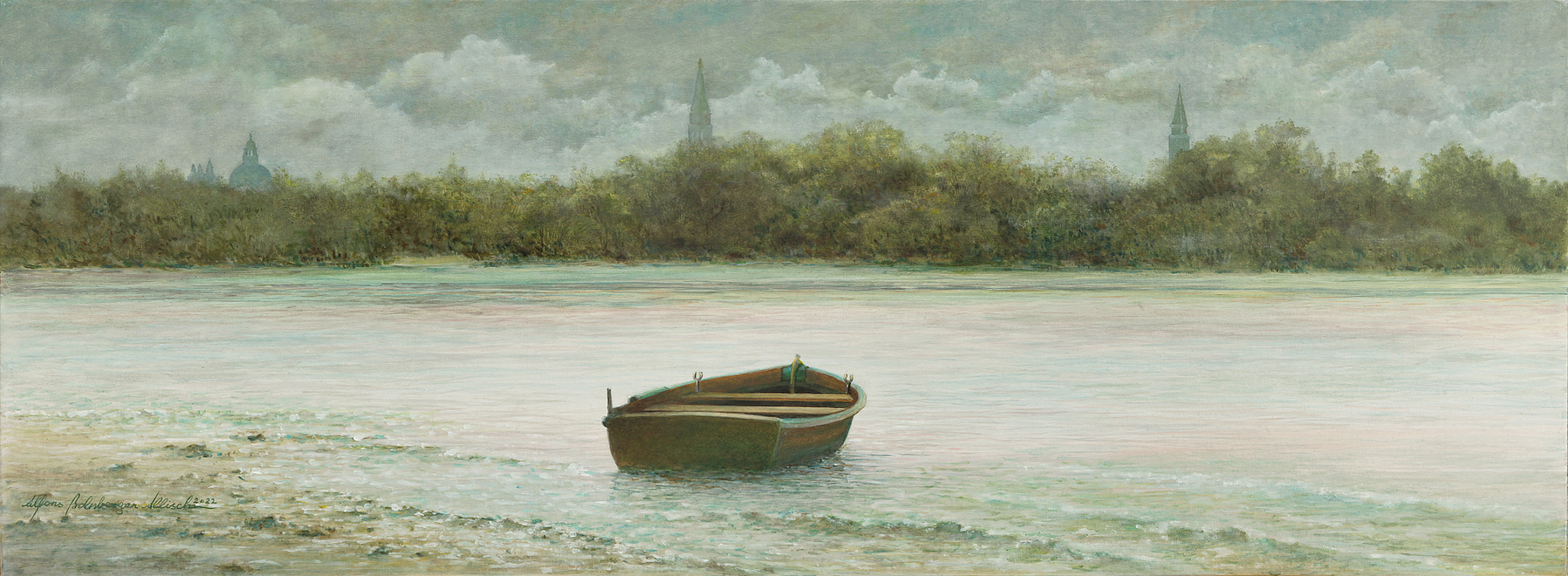 Raum 1 / Gemaltes Venedig, es will Abend werden Image 1 of 11 2022 Gerlindes 70er, Leinwand kaschiert auf Spanplatte, 92 x 34 cm