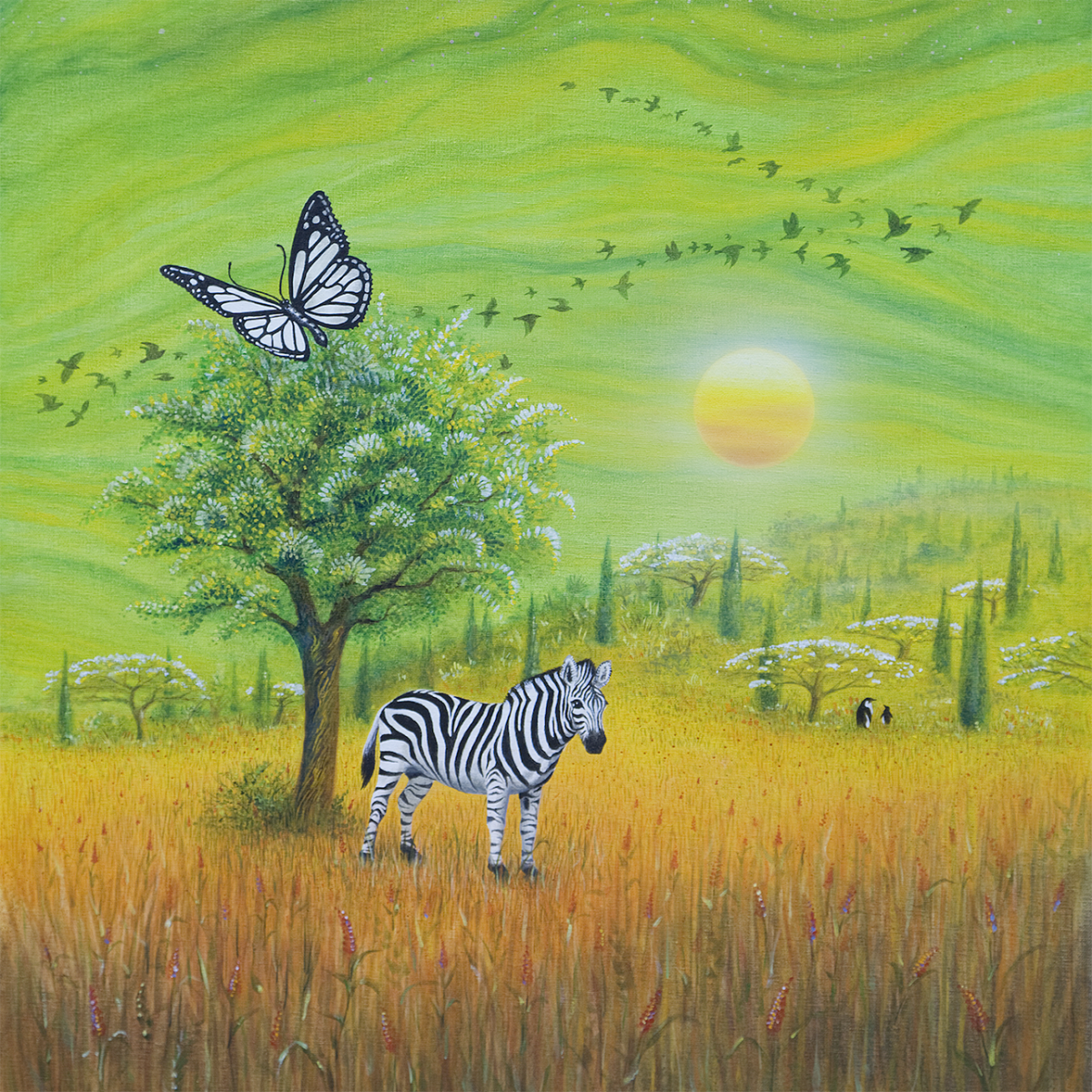 Raum 1 / Gemaltes Zebra Image 8 of 11 2012 Valeries Afrika, Öl, Leinwand kaschiert auf Karton 50 x 70 cm, Ausschnitt